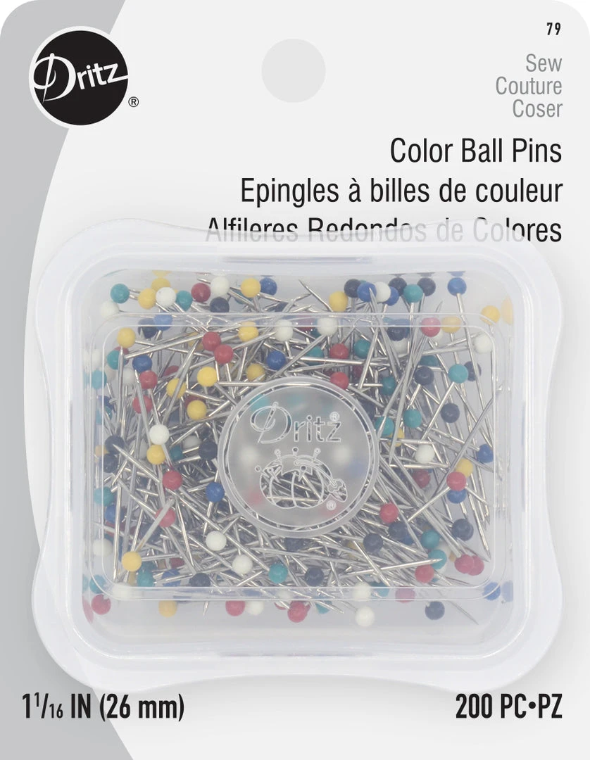 Dritz Color Ball Pins are ideal for general purpose sewing and medium weight fabrics. These straight pins are rustproof and are easy to see and handle.