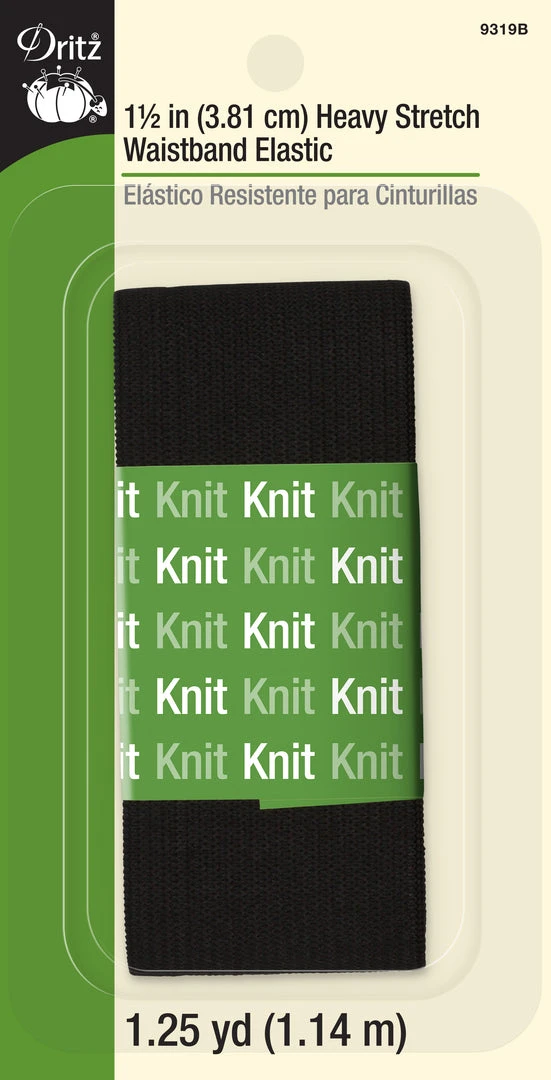 Dritz Heavy Stretch Waistband Knit Elastic is a strong, stiff stretch elastic for heavier fabrics. It is great for cuff bands, waistbands and jacket waistbands.