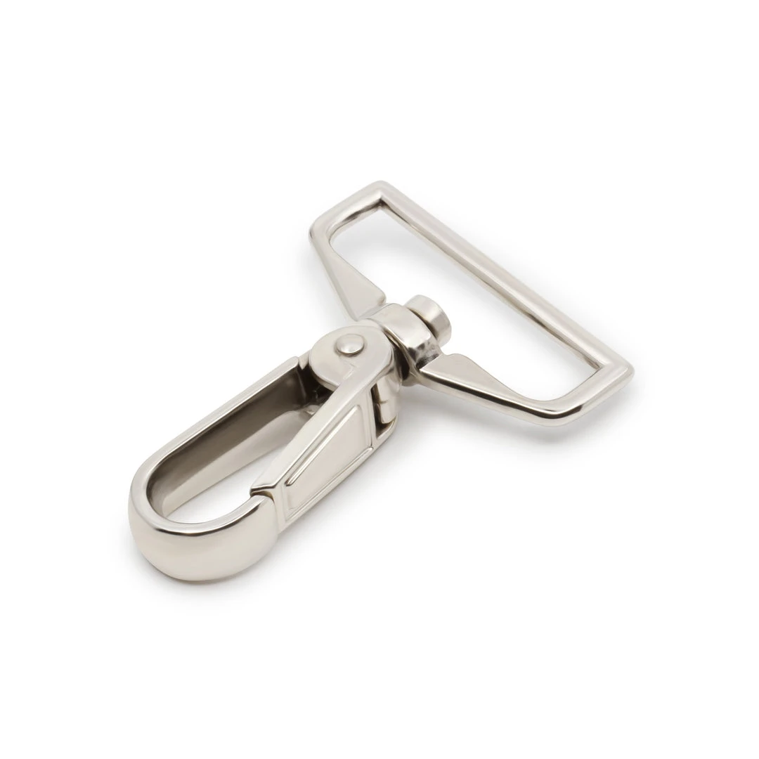 - The swivel hook has a loop end and a hook end; the hook end opens and closes allowing it to be attached to other pieces of hardware or fabric tabs