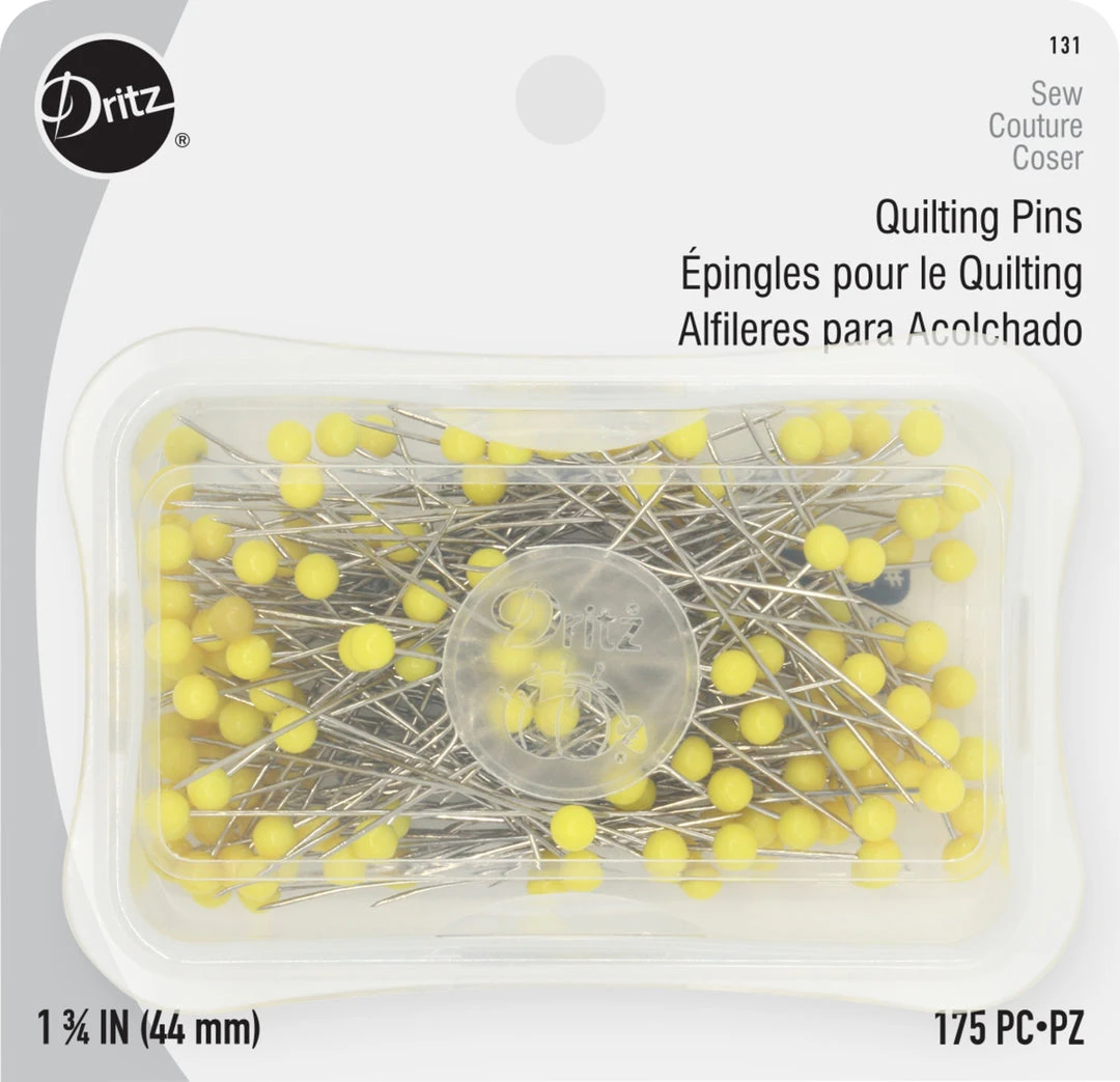 Use Dritz Quilting Pins for basting quilt layers. Ideal for multiple layers of fabric, loose weaves, synthetic furs, plush velvets and bulky fabrics.
