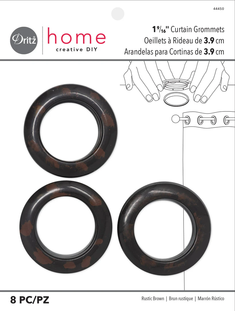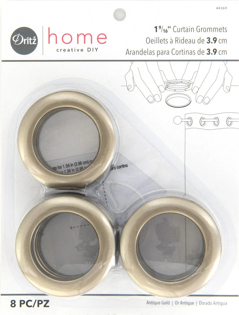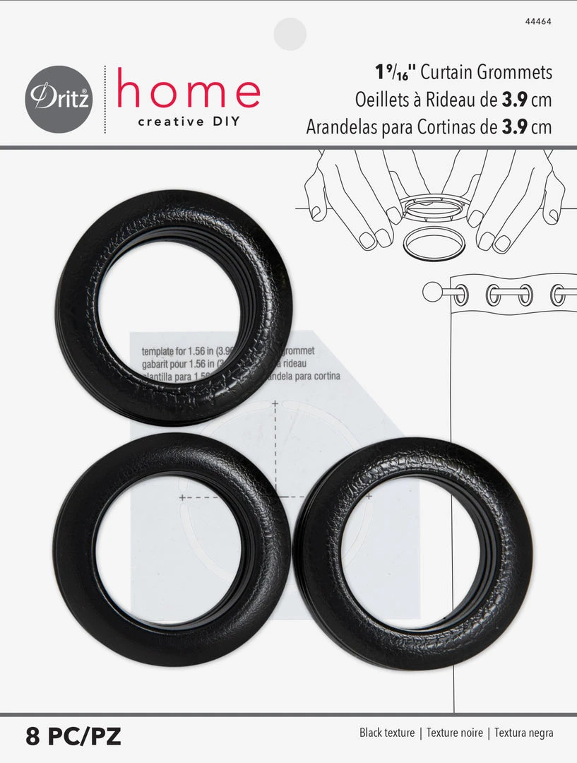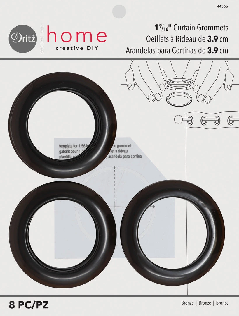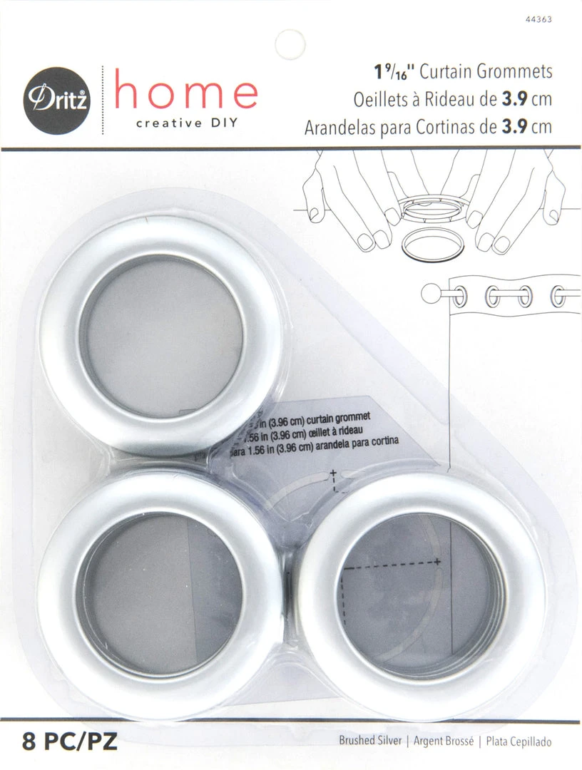 Use Dritz Home curtain grommets to transform a piece of fabric into a curtain panel. Easy to install, these grommets create a series of openings to insert a curtain rod through and allows your panel to hang.