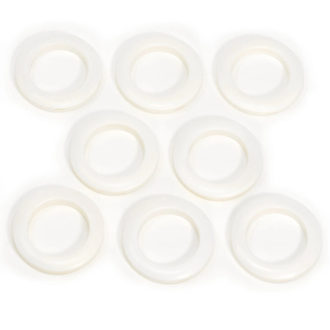 - Package includes (8) sets of 1-9/16-inch inner diameter plastic curtain grommets