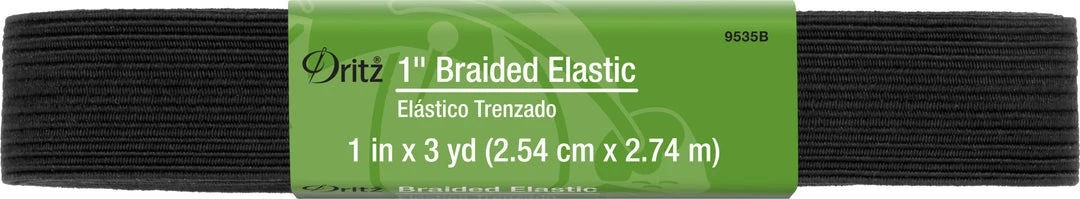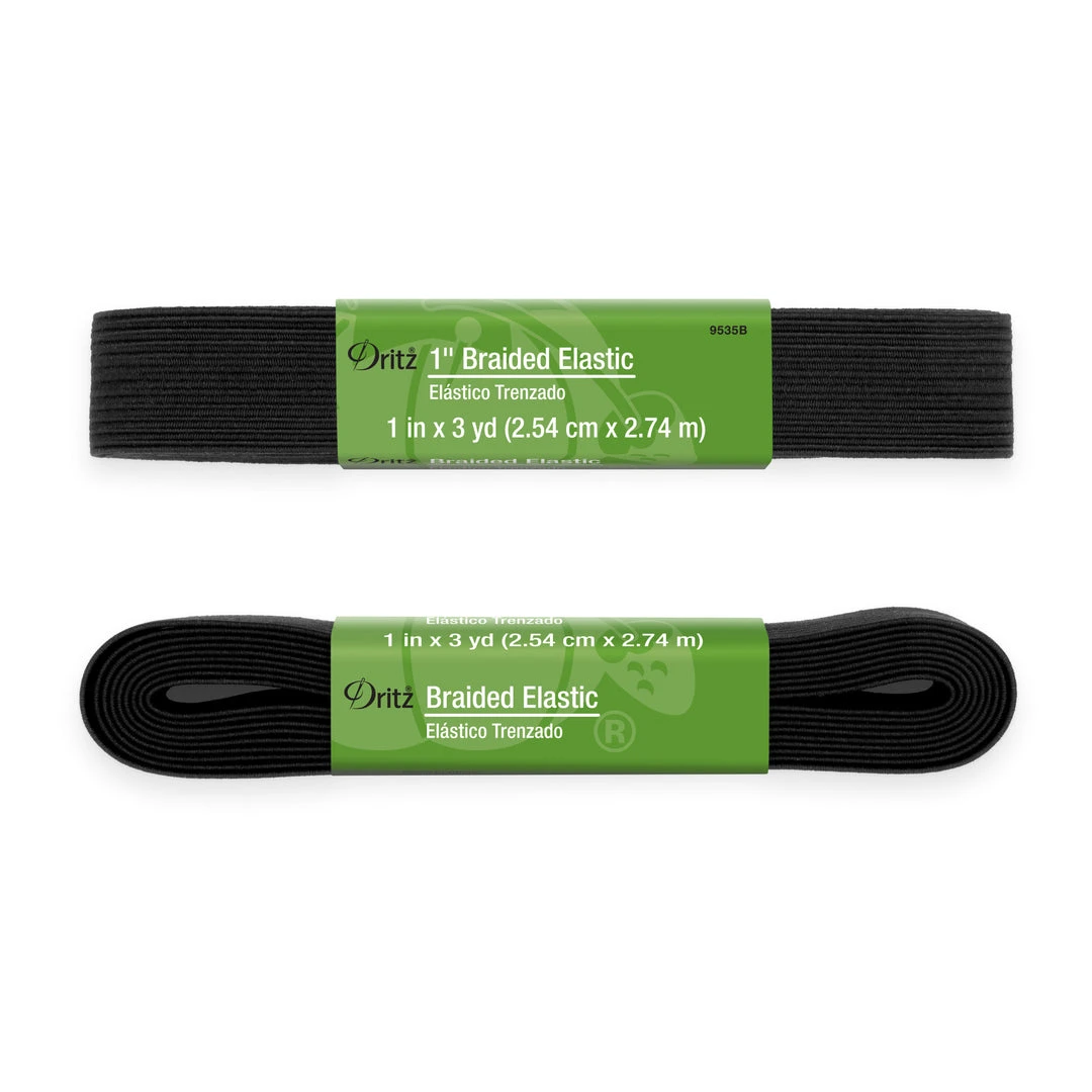 Dritz Braided Elastic is the most basic elastic. It is lightweight, slightly ribbed and it narrows when stretched. It is most often used on necklines, sleeves, waistbands and swimwear waistbands and leg bands.