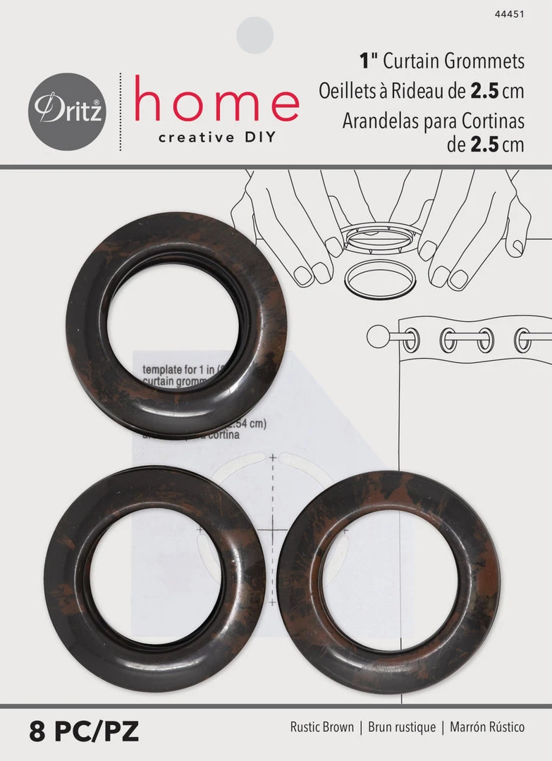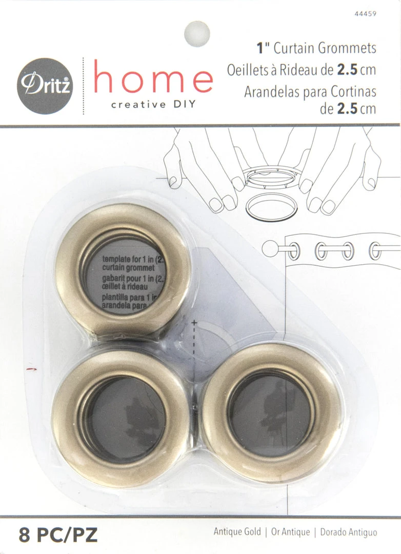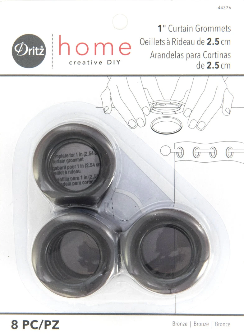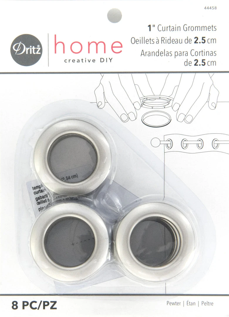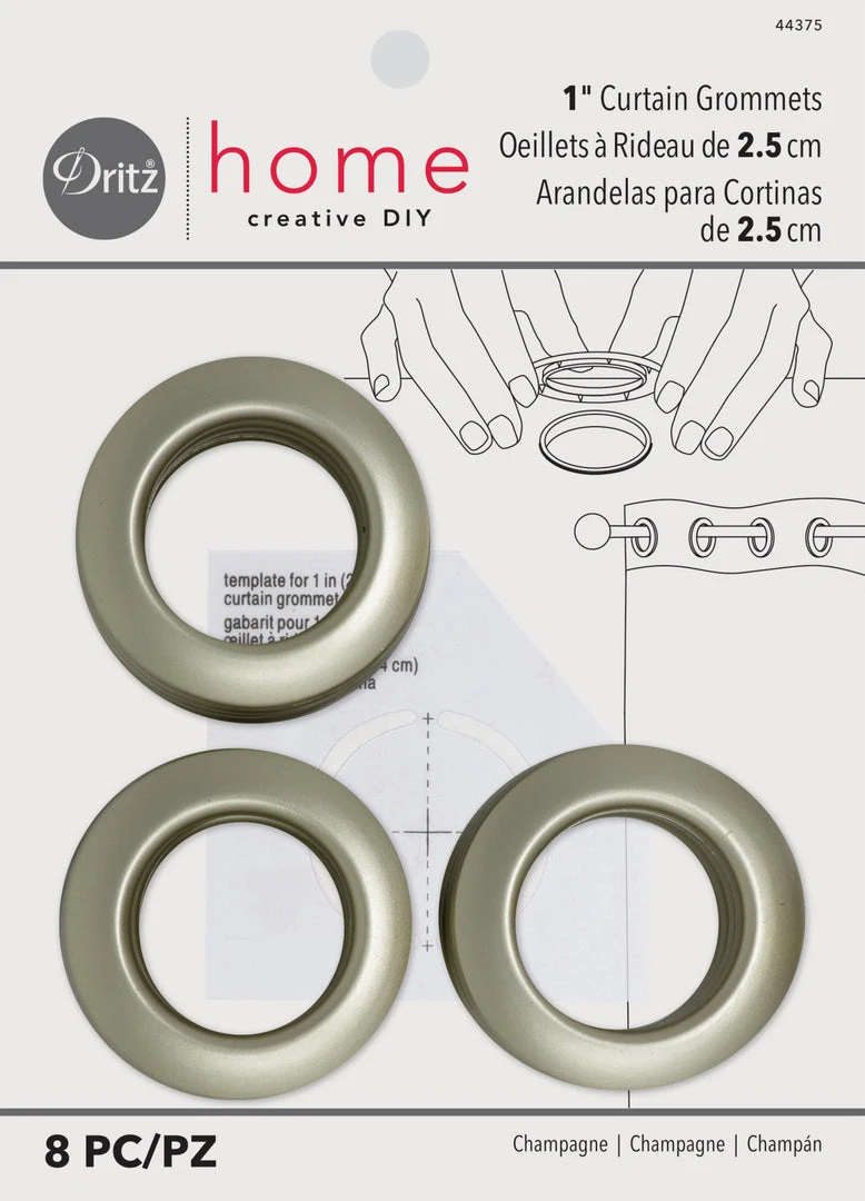 Use Dritz Home curtain grommets to transform a piece of fabric into a curtain panel. Easy to install, these grommets create a series of openings to insert a curtain rod through and allows your panel to hang.