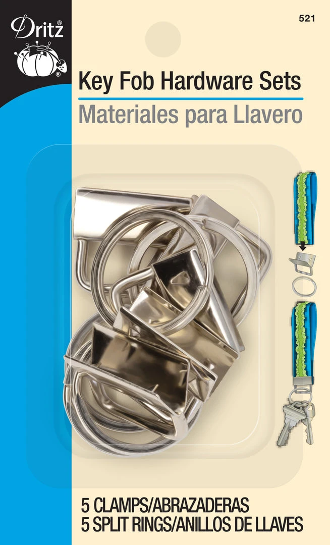 Design and make your own key fob using belting, elastic, ribbon or a combination of materials and this Dritz Key Fob Hardware Set. With a clamps and split rings, these sets make fashionable key chains, badges, lanyards and more. Accommodate a 1 inch strap. Includes hardware to make 5 fobs.