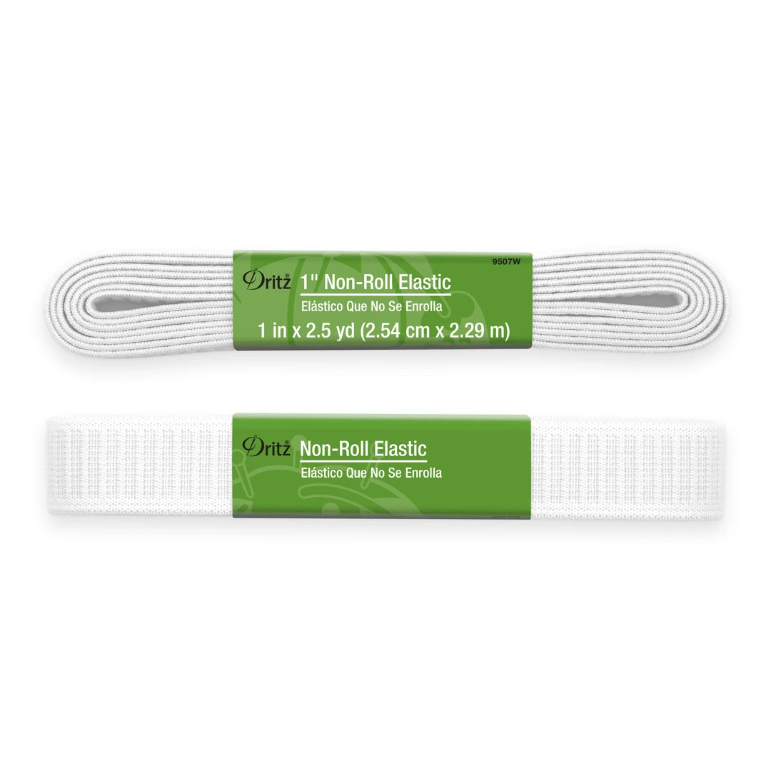 Dritz Non-Roll Woven Elastic resists rolling and twisting. It is used in a variety of applications and is ideal for waistbands, sleeves, and leg bands in light to medium-weight fabrics; such as, shorts, skirts, pants, and blouses.