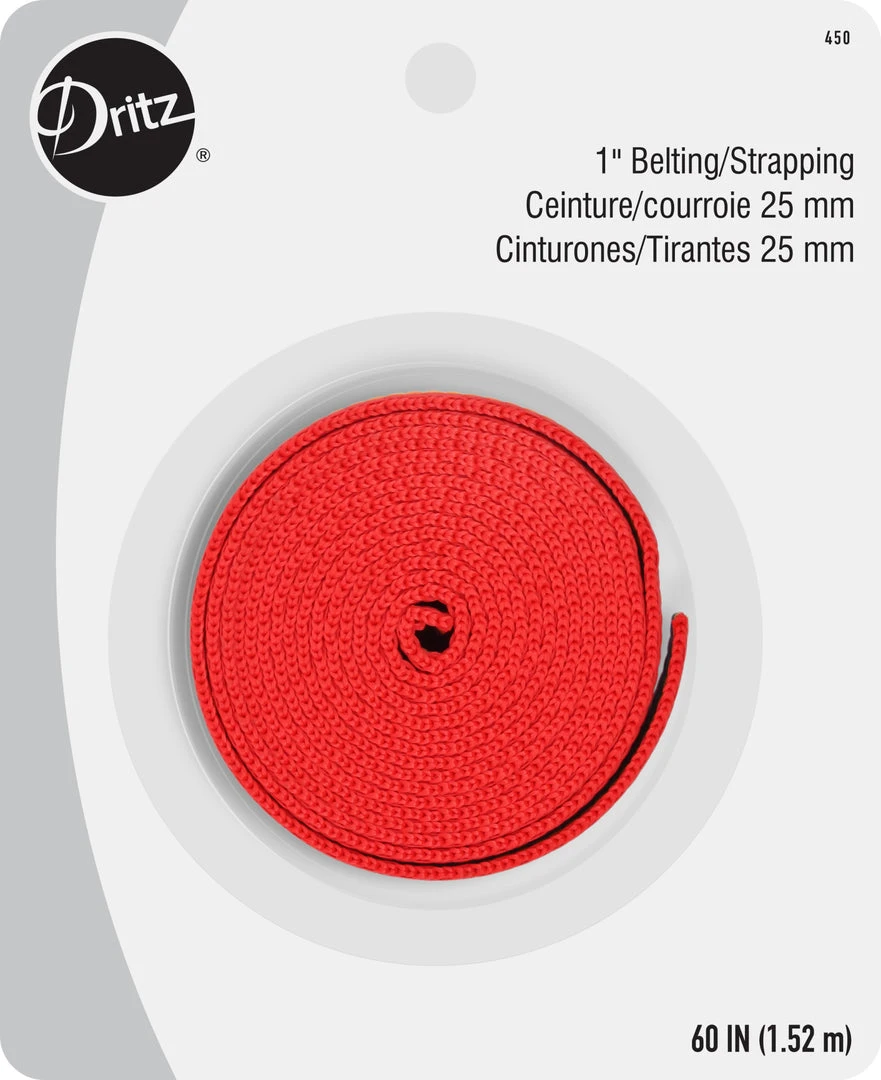 Dritz 1″ wide polypro belting is used for making straps and handles for a variety of sewing projects, such as totes and bags and is also ideal for DIY belt making. Easy to use with Dritz hardware (slide adjusters, swivel hooks & D-rings) for making bag straps and handles.