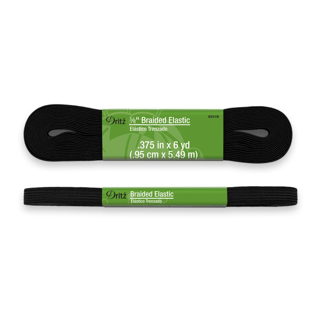 Dritz Braided Elastic is the most basic elastic. It is lightweight, slightly ribbed and it narrows when stretched. It is most often used on necklines, sleeves, waistbands and swimwear waistbands and leg bands.