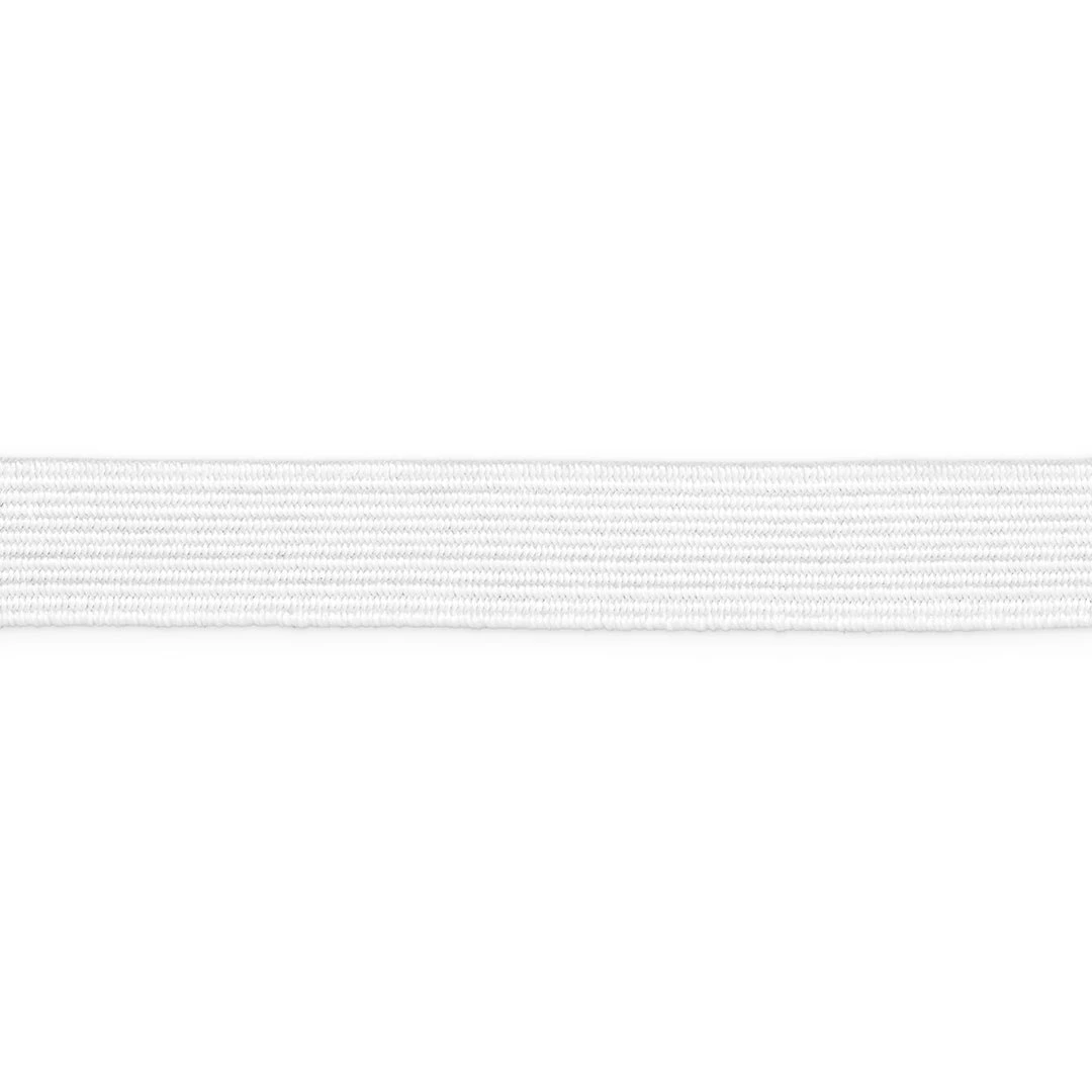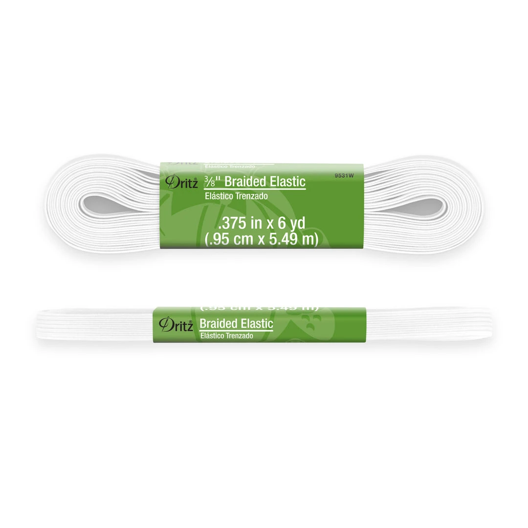 Dritz Braided Elastic is the most basic elastic. It is lightweight, slightly ribbed and it narrows when stretched. It is most often used on necklines, sleeves, waistbands and swimwear waistbands and leg bands.