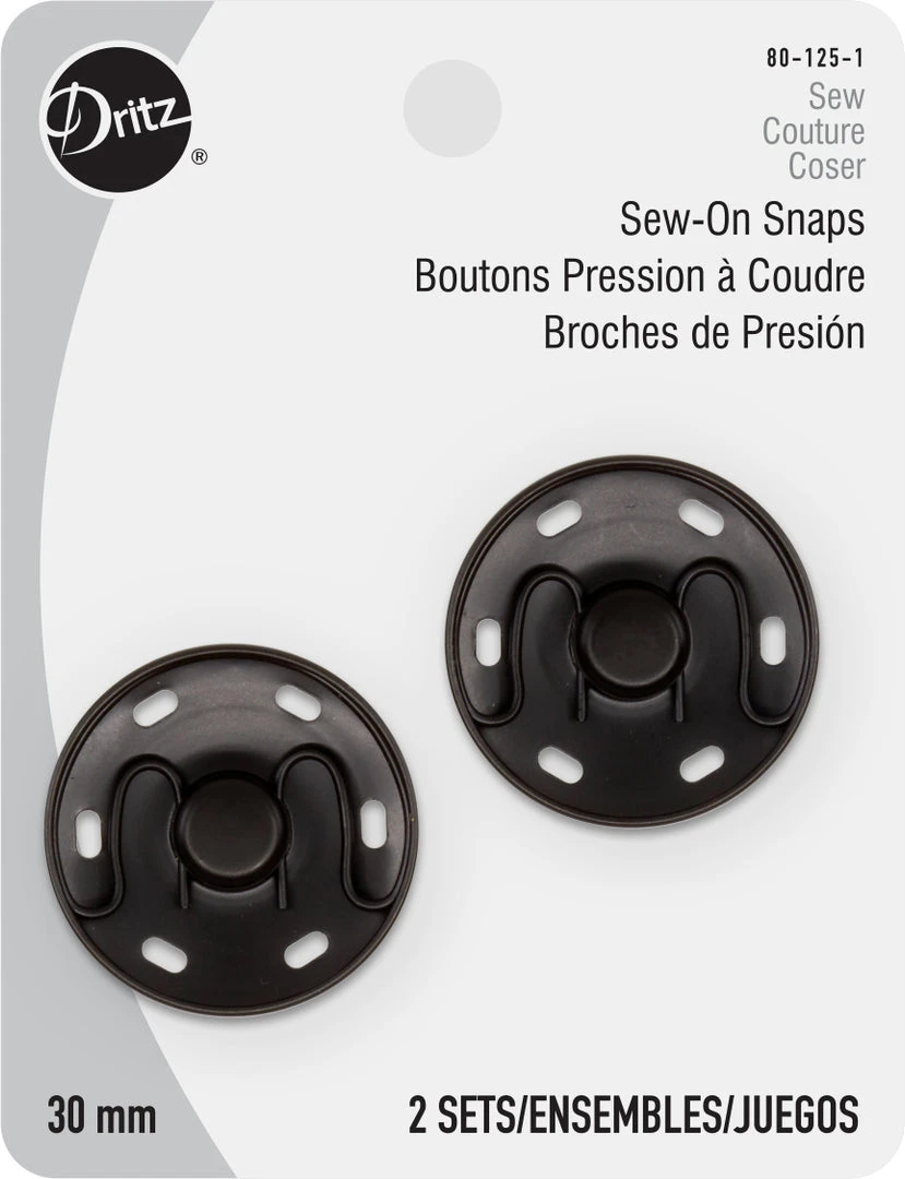 Easy to use and durable, the Dritz Sew-On Snaps 30mm Pack of 2 is a valuable addition to your sewing kit. This pack includes two 30-mm sew-on snaps that can be used as garment closures for sweaters, coats, sweatshirts and other apparel that require a large snap hook. You can also use these large sew-on snaps as closures for your handmade purses or totes. Available in a variety of finishes, each sold separately.