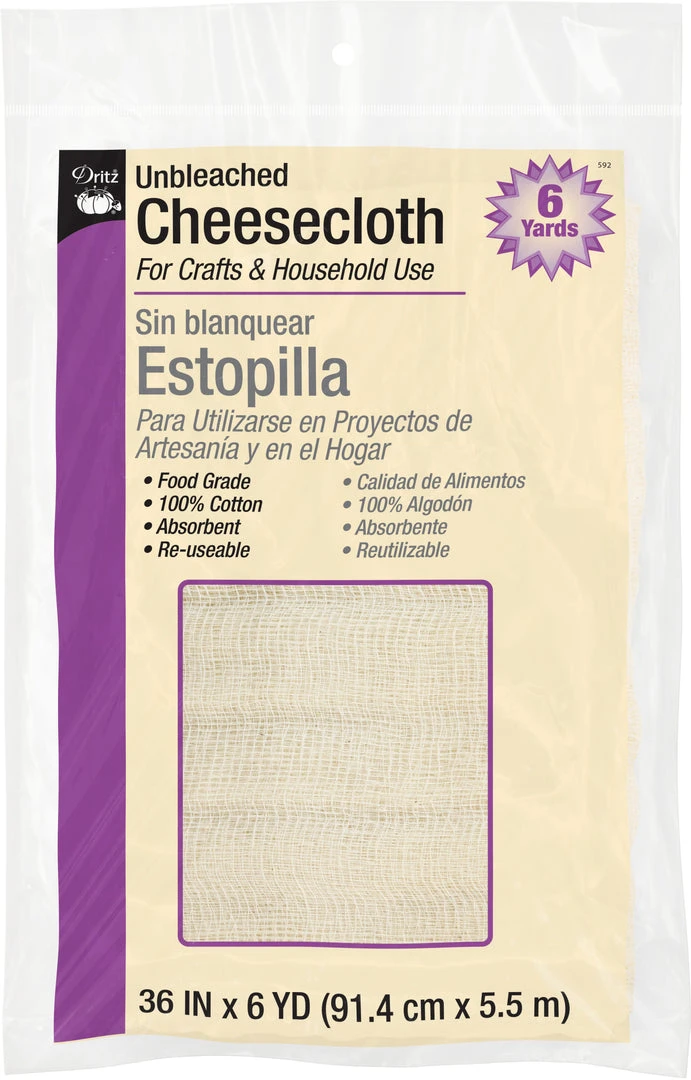 Dritz Cheesecloth is a versatile 100% cotton cloth material that can be used for a variety of DIY crafts and general household applications. Dye with fabric dye, stiffen with white glue or use to apply stain and paint. Ideal for many Halloween crafting applications; and it is also an economical option for table decor and DIY wedding crafts.