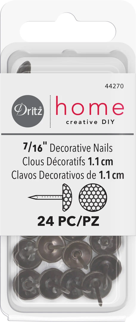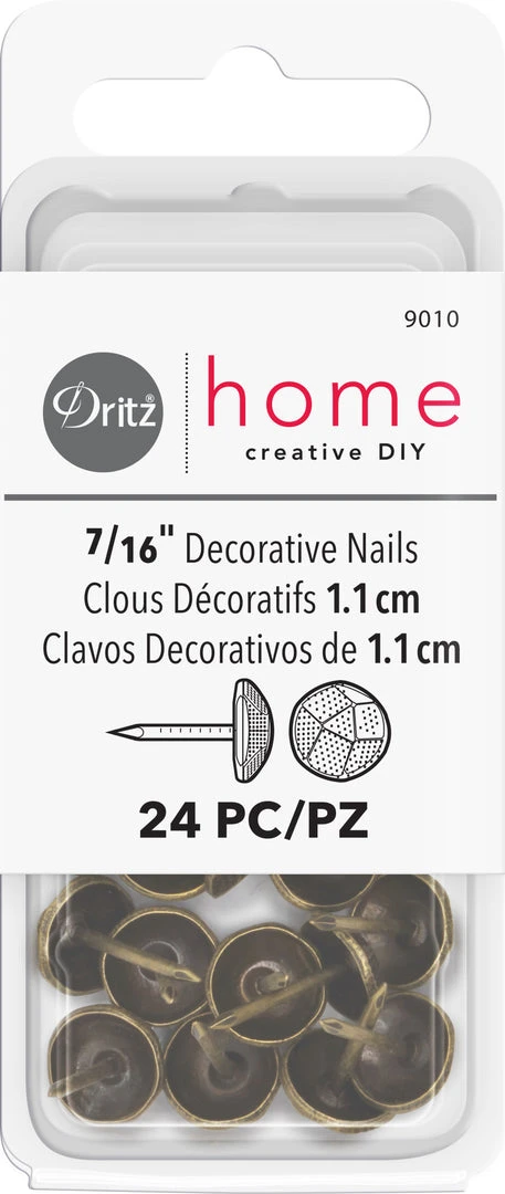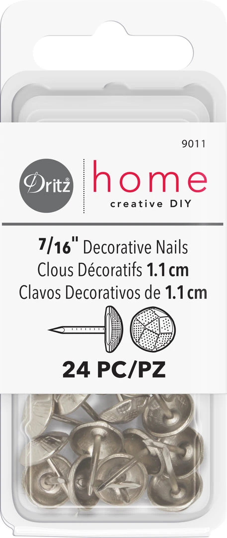 Accentuate your living space with the Dritz Home Hammered Decorative Nails. Use to add pattern and dimension to upholstered chairs, ottomans or headboards. Use nails alone or mix with other Dritz Home decorative nail styles to create visual interest. Ideal for DIY upholstery and craft enthusiasts. Always use safety glasses and proper tools to drive and remove this product.