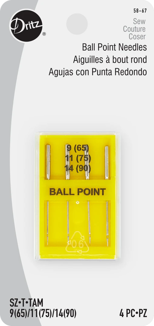 The Dritz Ballpoint Machine Needles are finely-crafted machine needles and slip through the weave of fabrics without causing runs. They are compatible with Singer, Kenmore, Signature, White, Necchi, New Home and other machines. Select needle sizes based on the weight of your fabric.