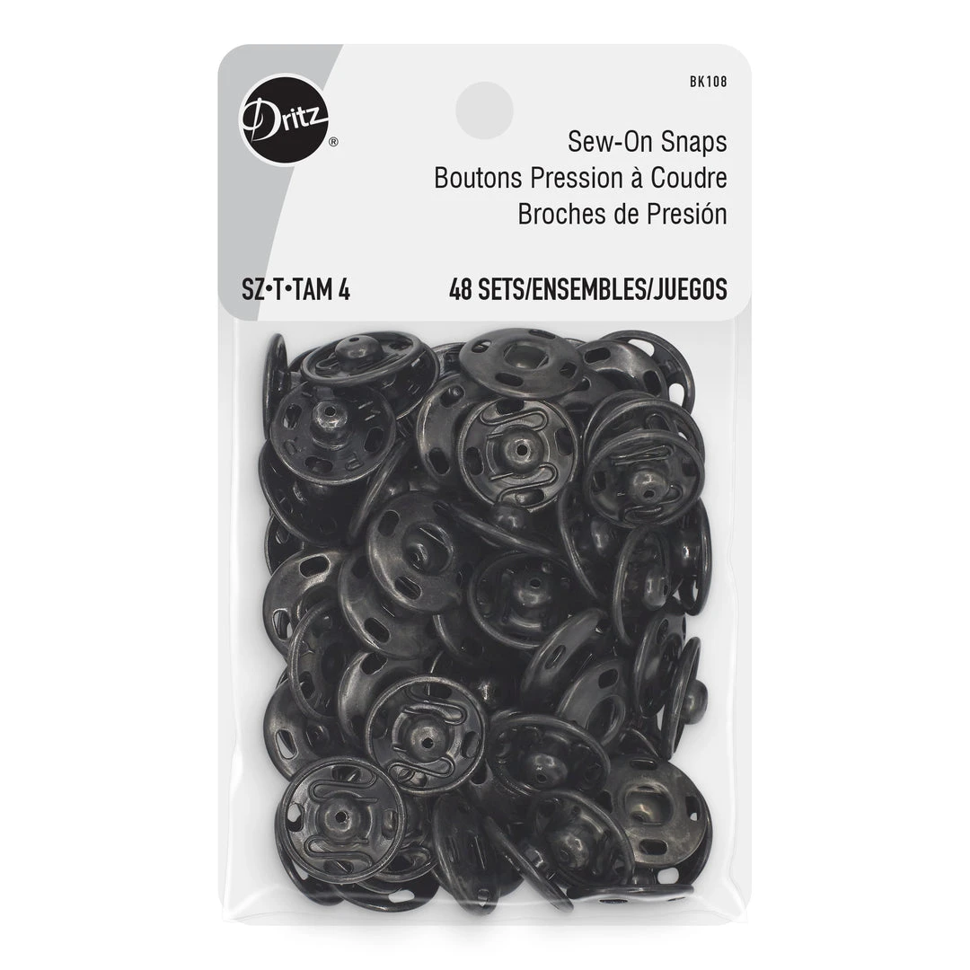 Dritz Sew-On Snaps are flat closures used to hold overlapping edges of fabric together and are ideal for use on clothing and accessories. These brass snaps have been specially crafted for durability and toughness and include four openings on the edges for stitching. Use them as garment closures on your blouses, shirts cardigans, coats and other apparel.