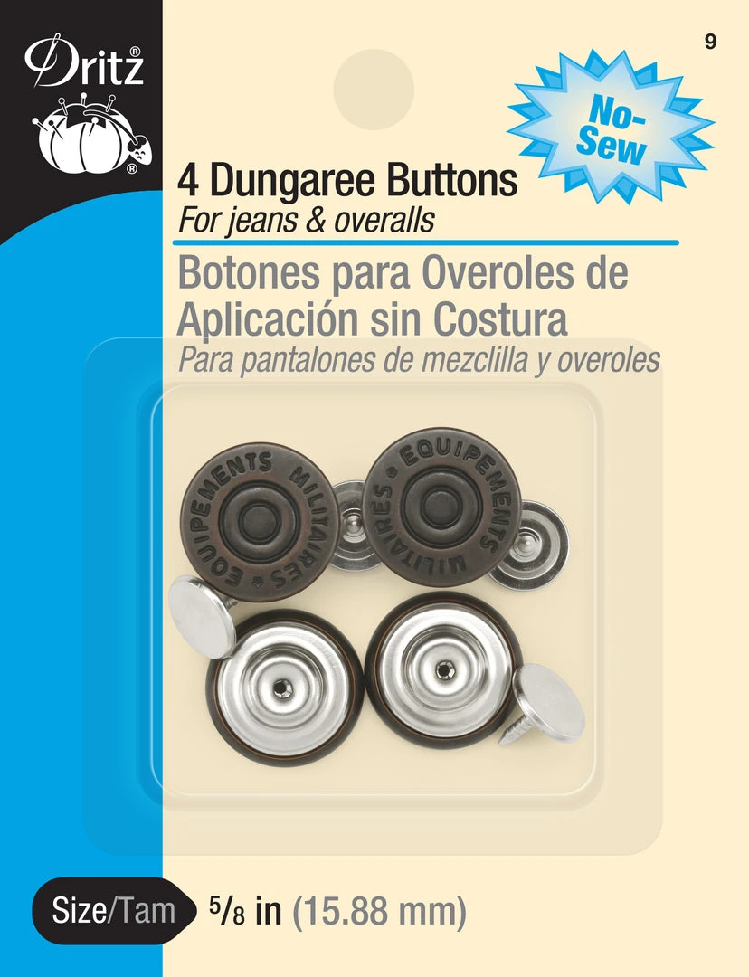 Embellish your denims with the Dritz Dungaree Buttons 5/8” Pack of 4. These no-sew dungaree buttons attach like snaps with tension, but are generally used with a buttonhole. Ideal for dungarees, overalls, jeans and sportswear, these buttons can also be used for a range of fabric projects.