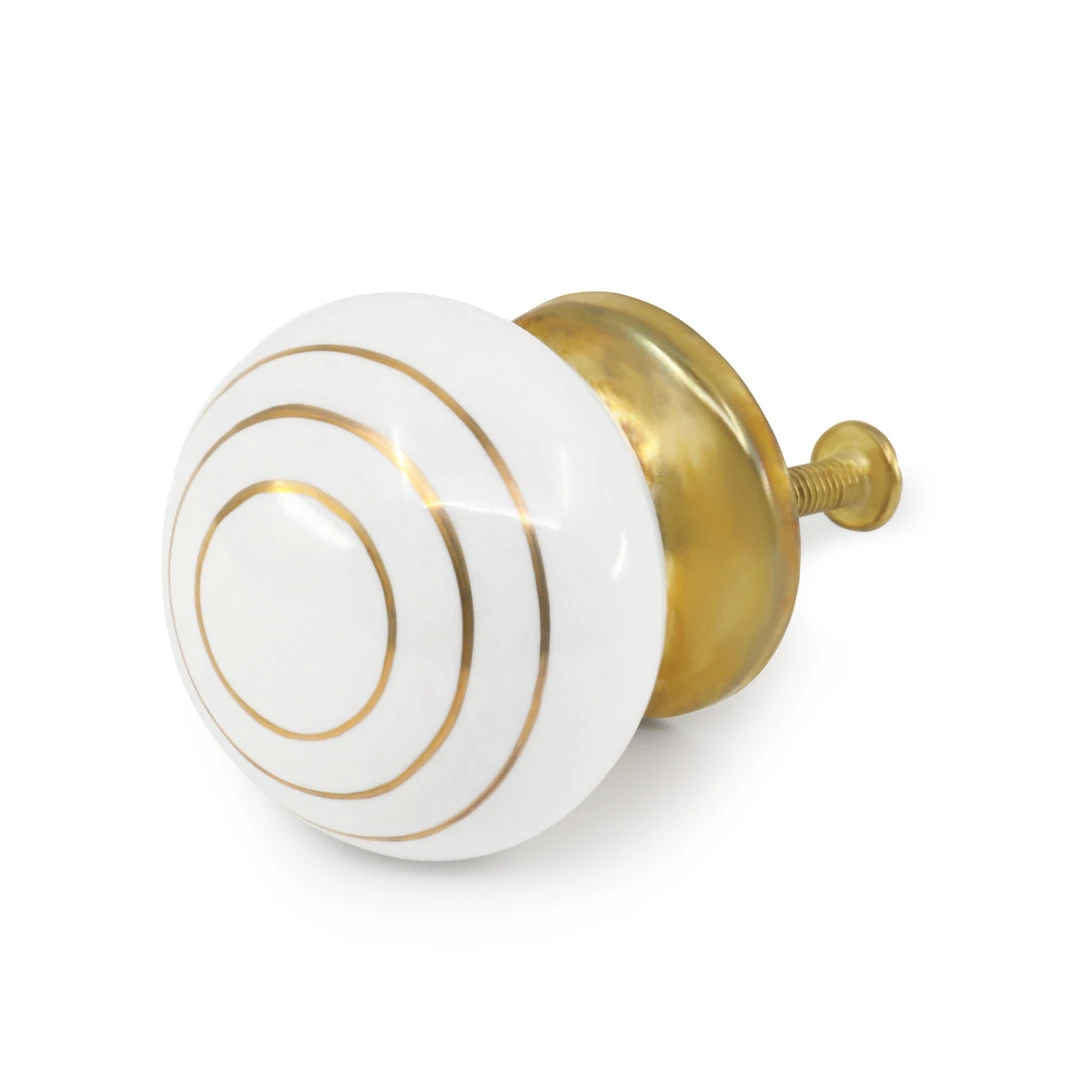 This Dritz Home ceramic gold ring ball knob is a functional piece of hardware that can be used to replace or refresh knobs on furniture and cabinets, or to make DIY accessories.