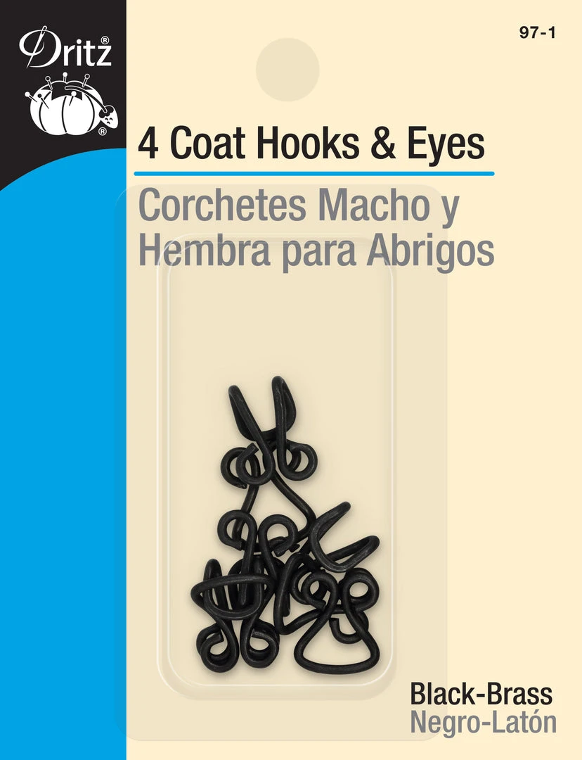 - Extra-large hook and eye closures for coats