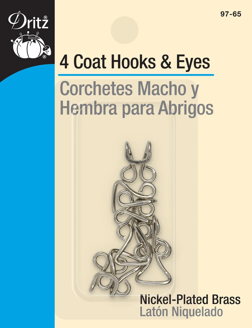 Use the Dritz Coat Hooks & Eyes Pack of 4 to hold together finished edges of your garments. Specially crafted for coats and blazers, this hook and eye set comes in different finishes to suit your specific requirements. A valuable addition to your sewing kit, this sturdy closure set is a simple and secure way to fasten your formal garments.