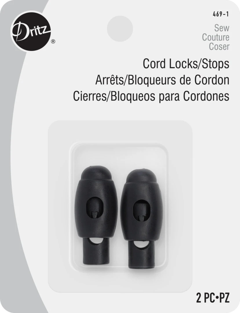 Dritz Cord Stops are the perfect tool to keep drawstrings in place. They not only keep cord ends from slipping into casings, but also add a decorative and finishing touch to your items. This package contains two black plastic cord stops.