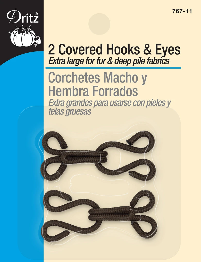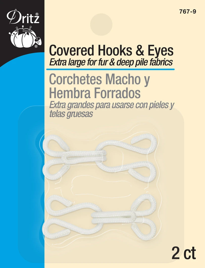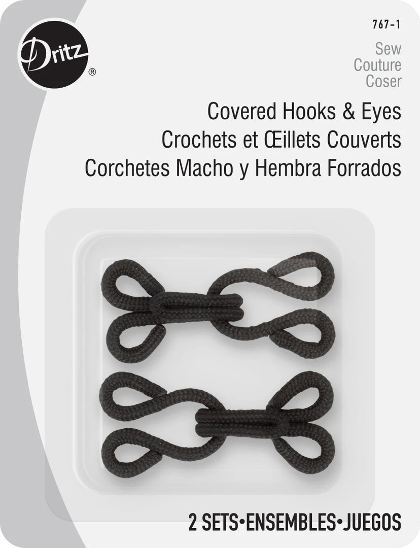 The Dritz Covered Hooks And Eyes are a great way of holding together finished edges like the waistband of skirts, pants, blouses or dresses. You can also use them to attach trains to wedding gowns, costumes or to create jackets, coats or wraps. Two covered hooks and eyes are included in this package.