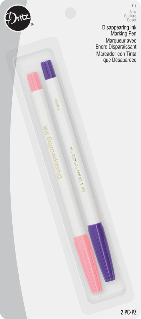 The Dritz Disappearing Ink Marking Pens are specially formulated to remove any incorrect markings in your needlecraft and quilting designs. Once your work is complete, you can easily wipe off the marks with the help of a damp cloth. These marking pens contain a water-soluble disappearing ink, which does the trick. It’s a simple and efficient way to make your job easy. Use these pens on washable fabrics for best results.