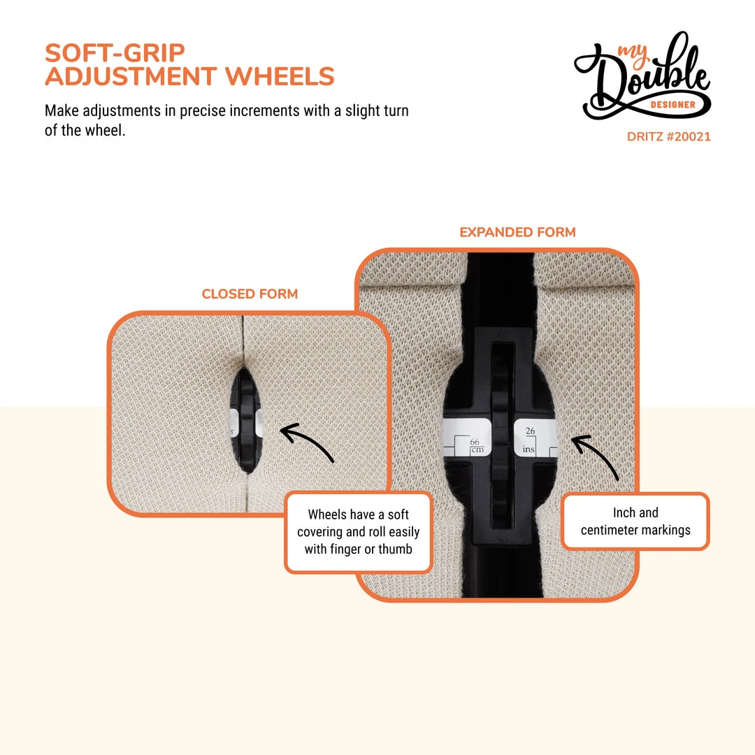 - Adjustable Body: 12 soft-grip rolling wheels adjust dress form in precise increments allowing you to customize the form to match your bust, waist, and hip measurements; decorative, wood finial adjusts neck Size