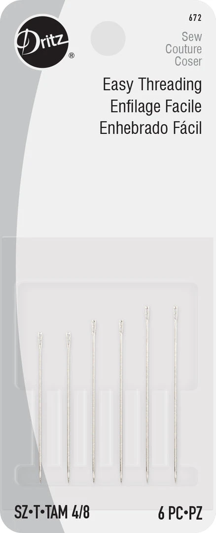 Make sewing fun and easy with the Dritz Self Threading Hand Needles. This pack comes with six self-threading needles of Size 4/8 that can be used for a variety of sewing purposes. Also known as calyx-eyes, these needles are easy to thread by simply pulling down the thread from the top of the needle. They come with a slotted top and a sharp tip as well for easy threading and piercing.