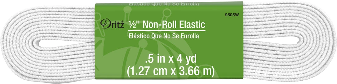 Dritz Non-Roll Woven Elastic resists rolling and twisting. It is used in a variety of applications and is ideal for waistbands, sleeves, and leg bands in light to medium-weight fabrics; such as, shorts, skirts, pants, and blouses.