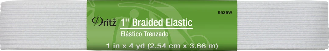 Dritz Braided Elastic is the most basic elastic. It is lightweight, slightly ribbed and it narrows when stretched. It is most often used on necklines, sleeves, waistbands and swimwear waistbands and leg bands.
