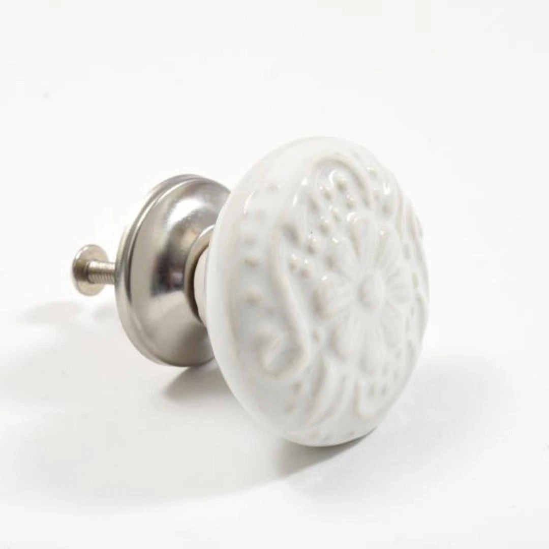 This Dritz Home ceramic embossed flower knob is a functional piece of hardware that can be used to replace or refresh knobs on furniture and cabinets, or to make DIY accessories.