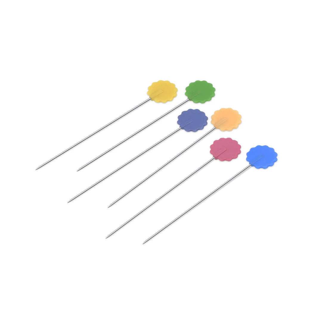 Dritz Flat Flower Head Pins are cute multi-purpose pins and their large, flat heads make them easy to use. They are great for holding together stacks of fabric, and general sewing and crafting projects. Because of they feature a “No Melt” technology, they can be ironed over without leaving a trace on your fabric.