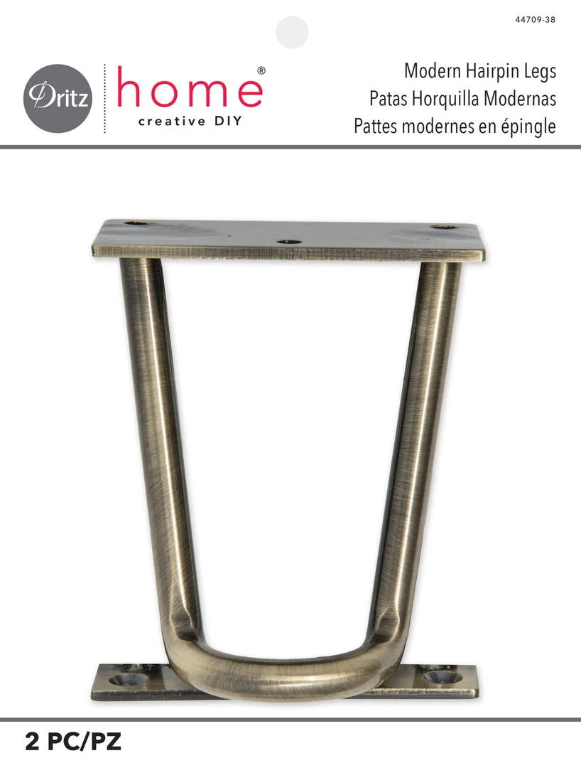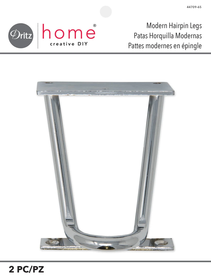 Dritz Home hairpin metal legs are decorative and functional legs that can be applied to a variety of furniture pieces and accessories using screws (not included). Metal legs are used by woodworkers, decorators and DIY enthusiasts. They can be installed in handcrafted or new custom pieces, or used to refresh out-of-date pieces. Common uses for metal legs are ottomans, benches, shelves, occasional tables, chest of drawers and more.