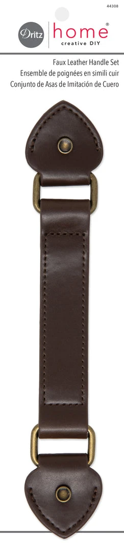 The Dritz Home faux leather handle set is used by DIY enthusiasts, sewists and craftsmen to customize cushions, baskets, storage and furniture with a functioning handle that can be grasped to open/close drawers or pick up cushions and pillows .Th leather handle set includes one faux leather handle and two Chicago screws. The Chicago screws are hardware that fasten the handle to another surface, such as fabric or wood.