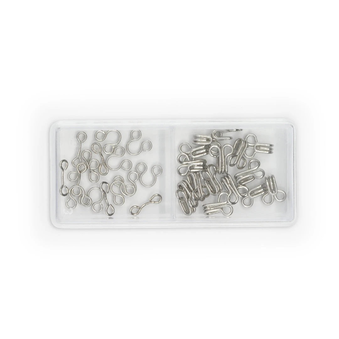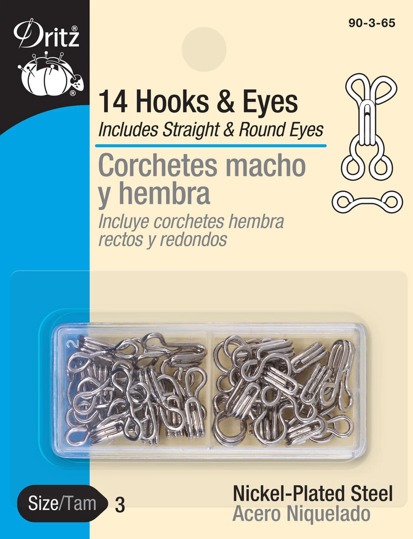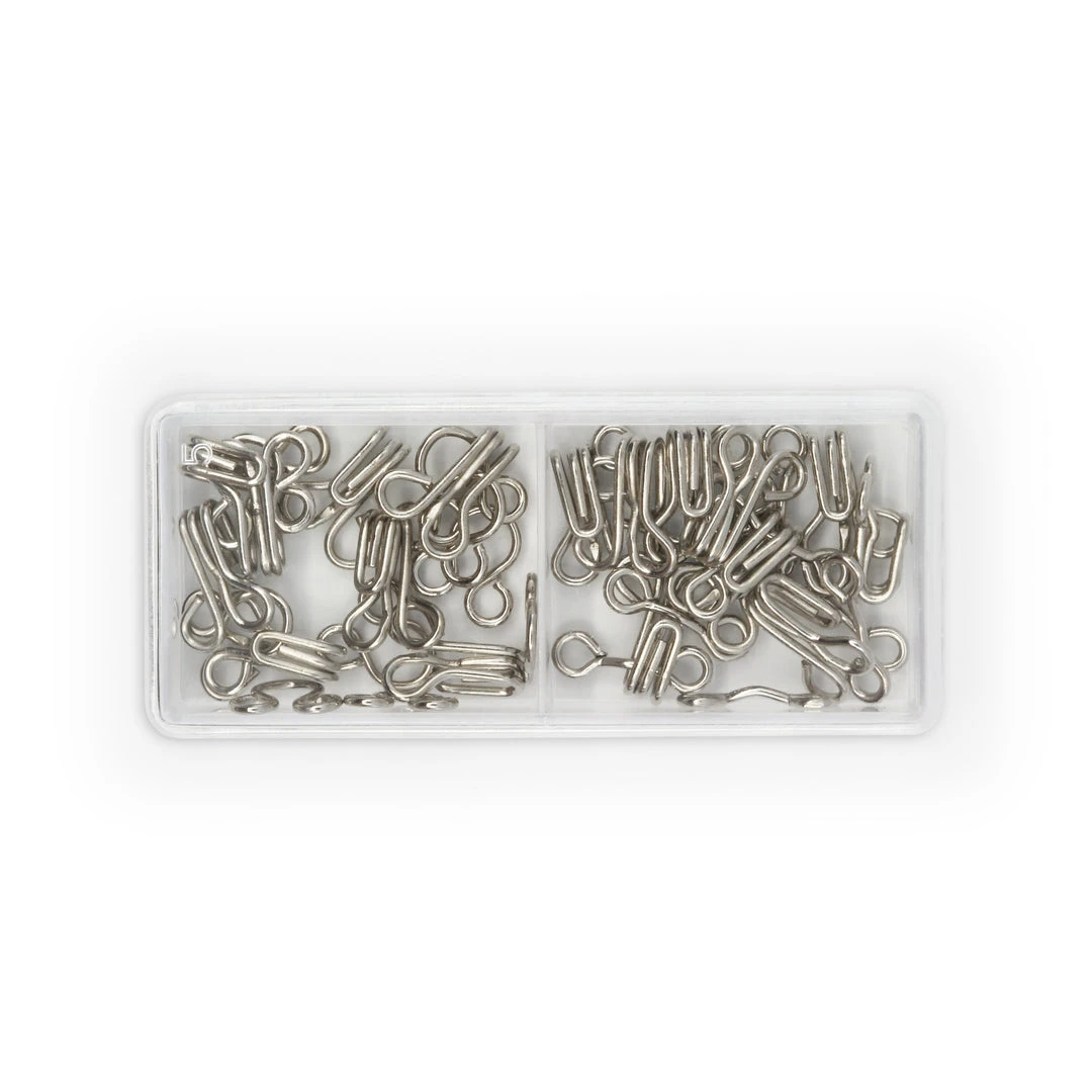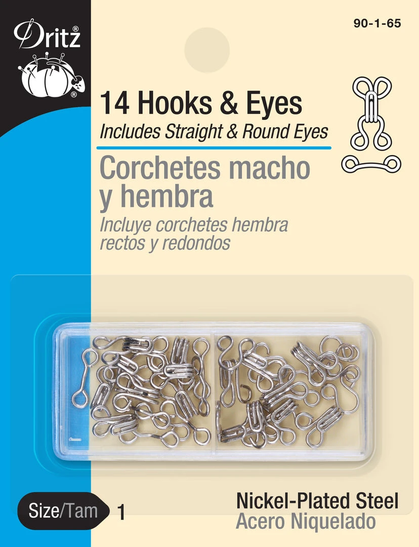 Dritz Hook & Eye Closures are sewing fasteners that are used to hold finished edges of your fabric and apparel projects together. They are ideal for pants, skirts, formalwear, lingerie and costumes. A valuable addition to your sewing kit, these closures are machine washable and dry cleanable.