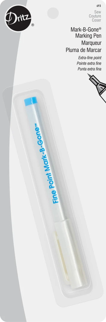 Mark your fabrics for sewing and quilting projects with the Dritz Quilting Mark-B-Gone Marking Pen Fine Point. This marking pen comes with an extra-fine point for detailed marking. The quilting marking pen is designed to transfer quilting, craft, appliques and embroidery patterns onto washable fabrics. It’s air and water soluble in most fabrics and the ink disappears in a short period of time.