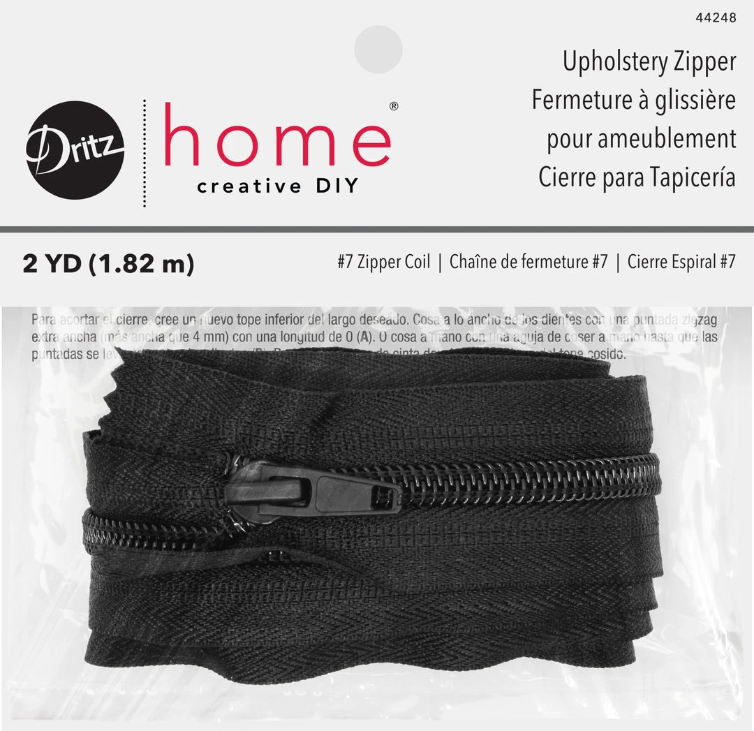 Use the Dritz Home 72-inch Upholstery Zipper Black to create stylish covers and protect your upholstery. This pack contains one long upholstery zipper that is ideal for cushions, pillows or slipcovers. Made of nylon, this upholstery zipper comes in neutral cream and will complement most home decor themes. It is available in different sizes, each sold separately.