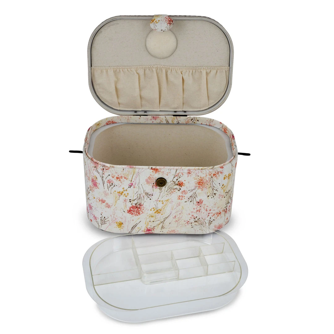- Includes removable tray for organizing small tools and sewing supplies