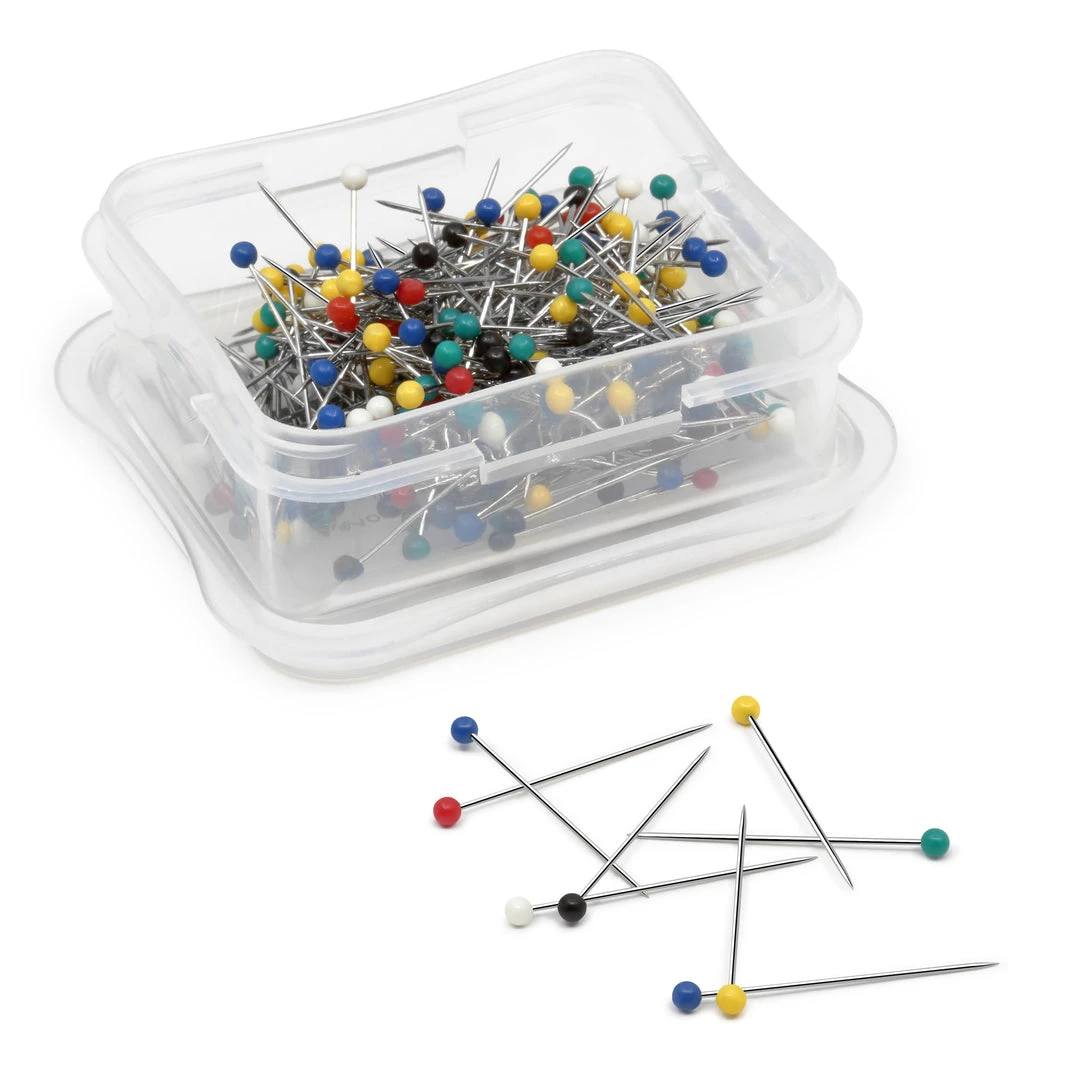 Ball Point Pins by Dritz have a rounded tip that are specially designed for knits and lingerie fabrics. These nickel-plated steel straight pins feature multi-colored heads and a 0.5mm extra fine shaft.