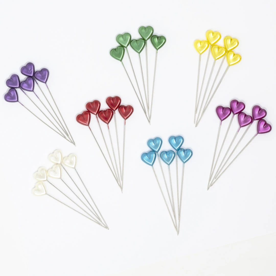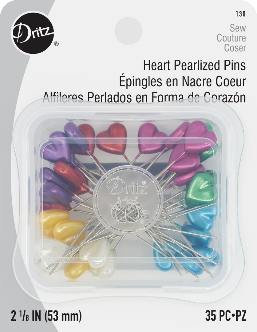 Dritz 2-1/8″ Long Heart Pearlized Pins are for general sewing, crafts and decorative projects. These nickel-plated steel pins feature colorful pearl heads and a long shaft.