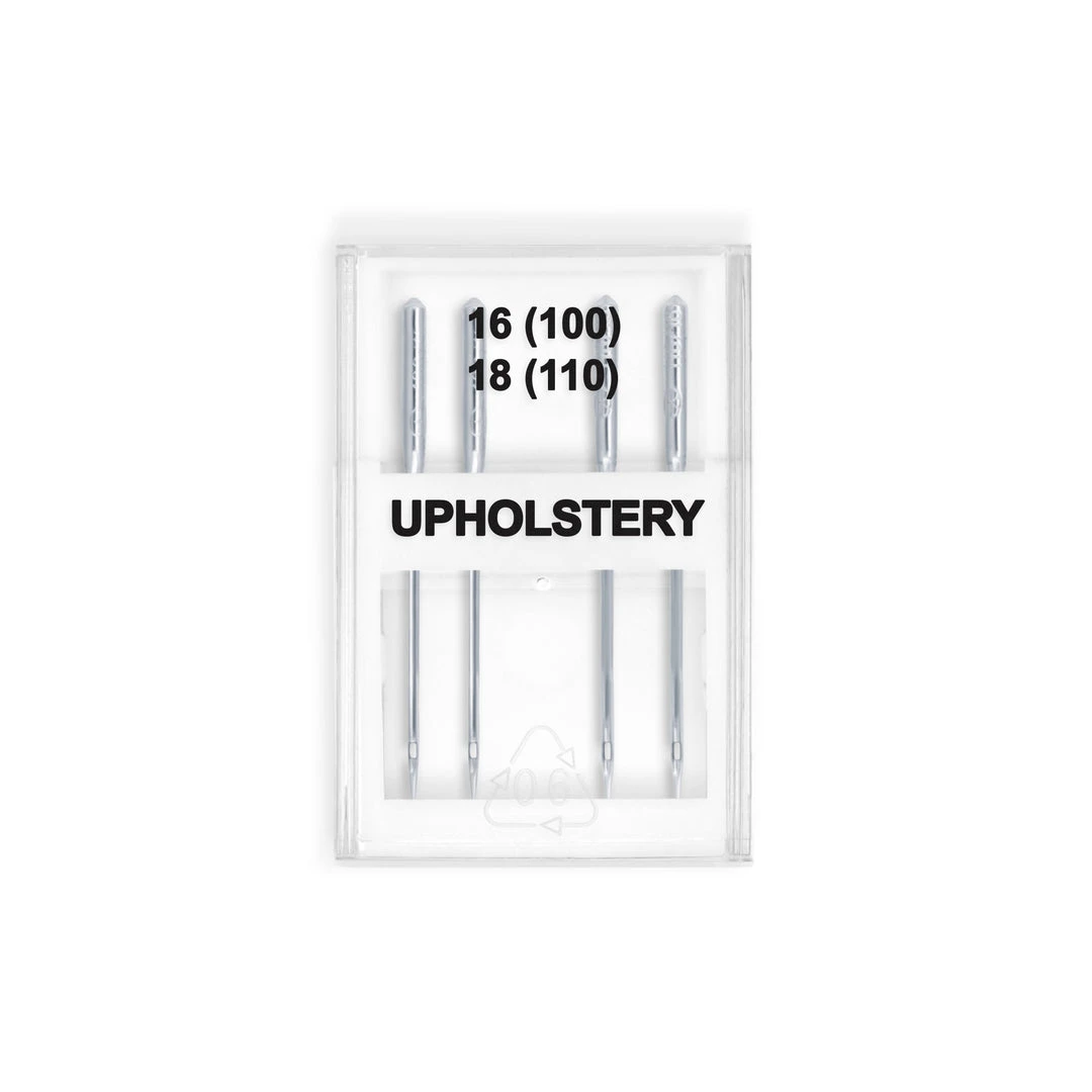 For machine based upholstery projects with fabrics and trims, equip your sewing machines with the Dritz Home Upholstery Machine Needles Pack of 4. The are designed for use with heavyweight upholstery fabrics and are compatible with most machine brands. This package comes with four needles of two different sizes each. Use the size 16 needles for light to medium weight fabrics and the size 16/100 and 18/110 needles for heavy weight fabrics.