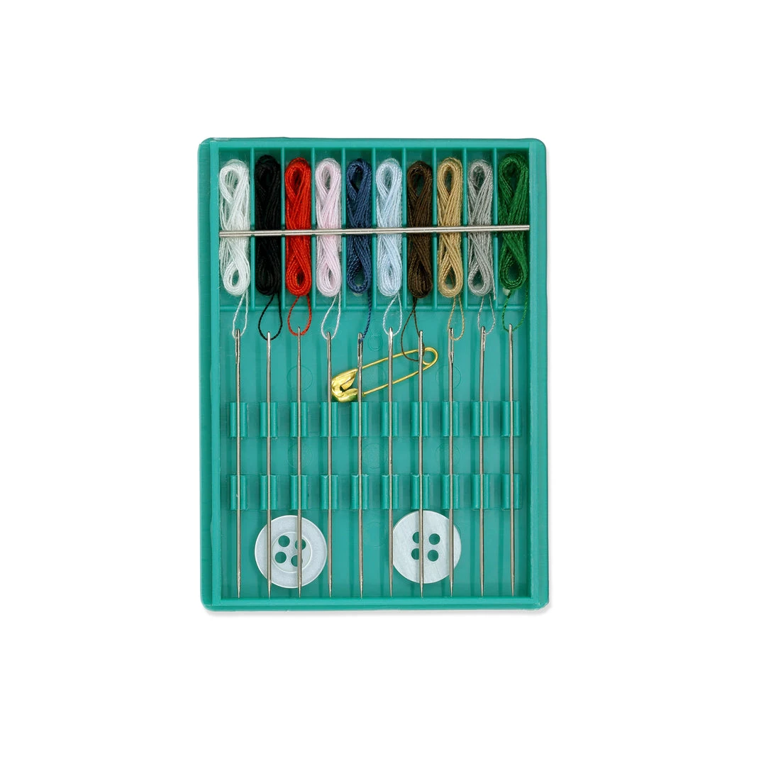 The Dritz Pre-Threaded Needle Kit is perfect for quick repairs and emergency fixes. It is a convenient size to throw in your bag and take on the go. It contains 2 buttons, 1 Safety Pin and 10 pre-threaded hand needles with white, black, red, pink, brown, tan, royal blue, light blue, gray and green thread all packaged in a compact storage case. This handy kit is perfect for the office, car and travel.