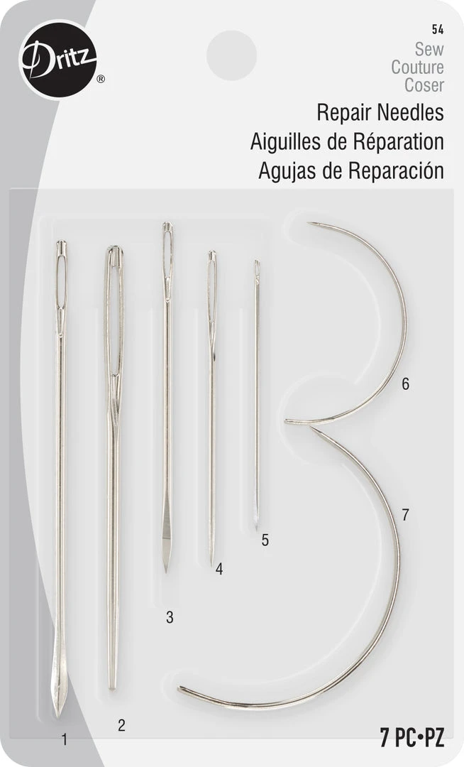 The Dritz Repair Needles Pack of 7 is a must-have in your utility and travel kit. It includes seven different types of needles which can be used to mend a variety of materials. Needles from this package can patch it all – from fabric tears to upholstery nicks. This pack of repair needles can also be used to repair heavy-duty items like sails, sacks, canvasses and carpets.
