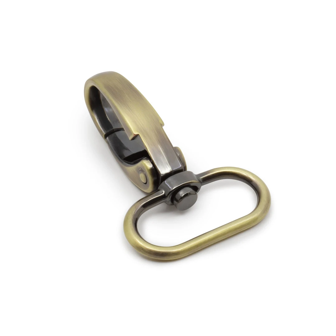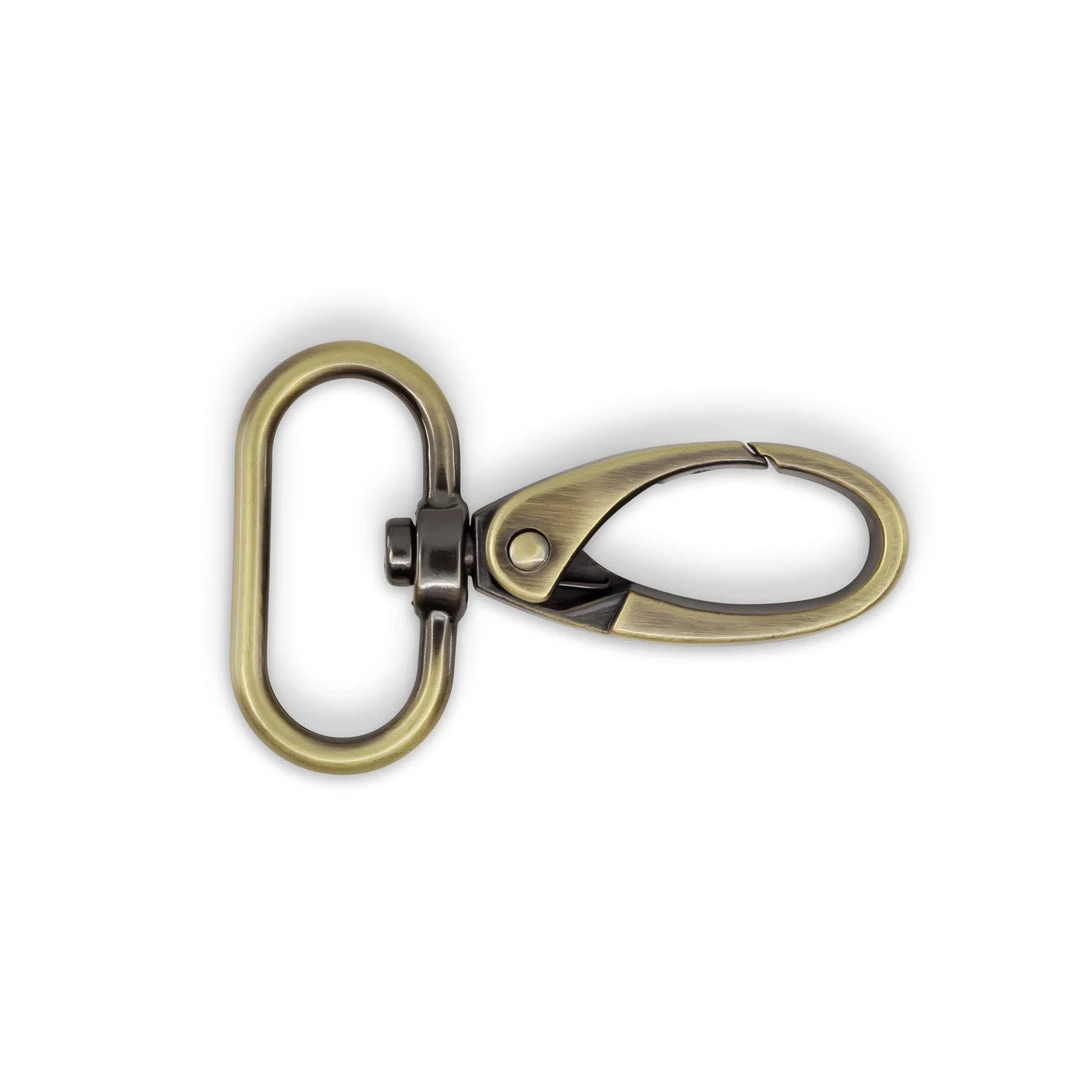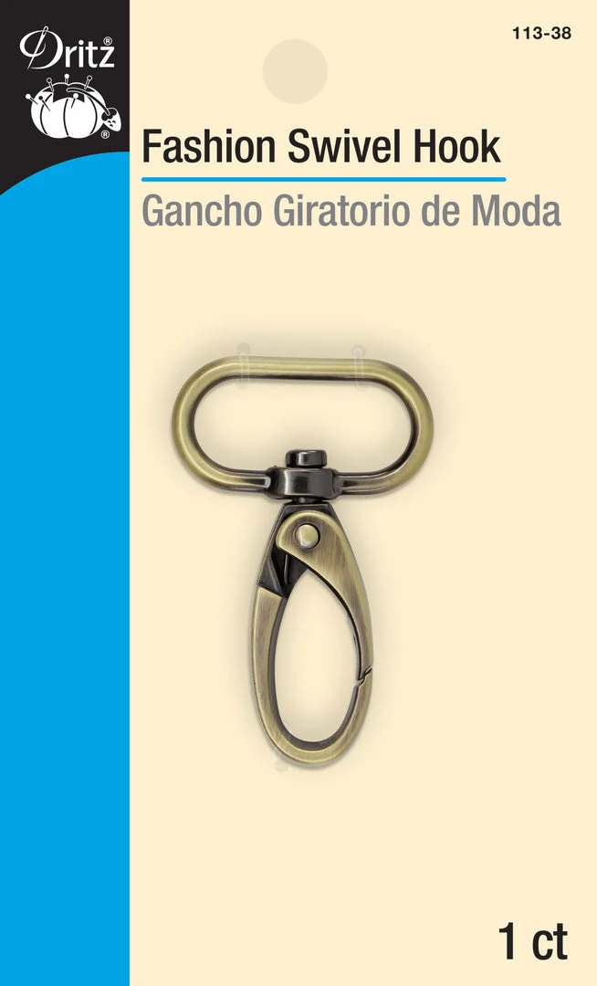 Dritz Fashion Swivel Hook in a brushed antique brass finish is a decorative hardware used for bags, totes and other graft projects. Use with D-rings to attach handles to bags and create removable straps. Slip a strap through loop and attach to interior of bag for easy access to keys. For 1″ fabric, elastic, or belting.