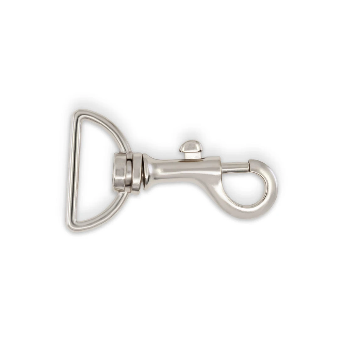 Dritz Swivel Hook in a nickel finish is a decorative hardware used for bags, totes and other graft projects. Use with D-rings or rectangle rings to attach handles to bags and create removable straps. Slip a strap through loop and attach to interior of bag for easy access to keys. For 7/8″ fabric, elastic, or belting.