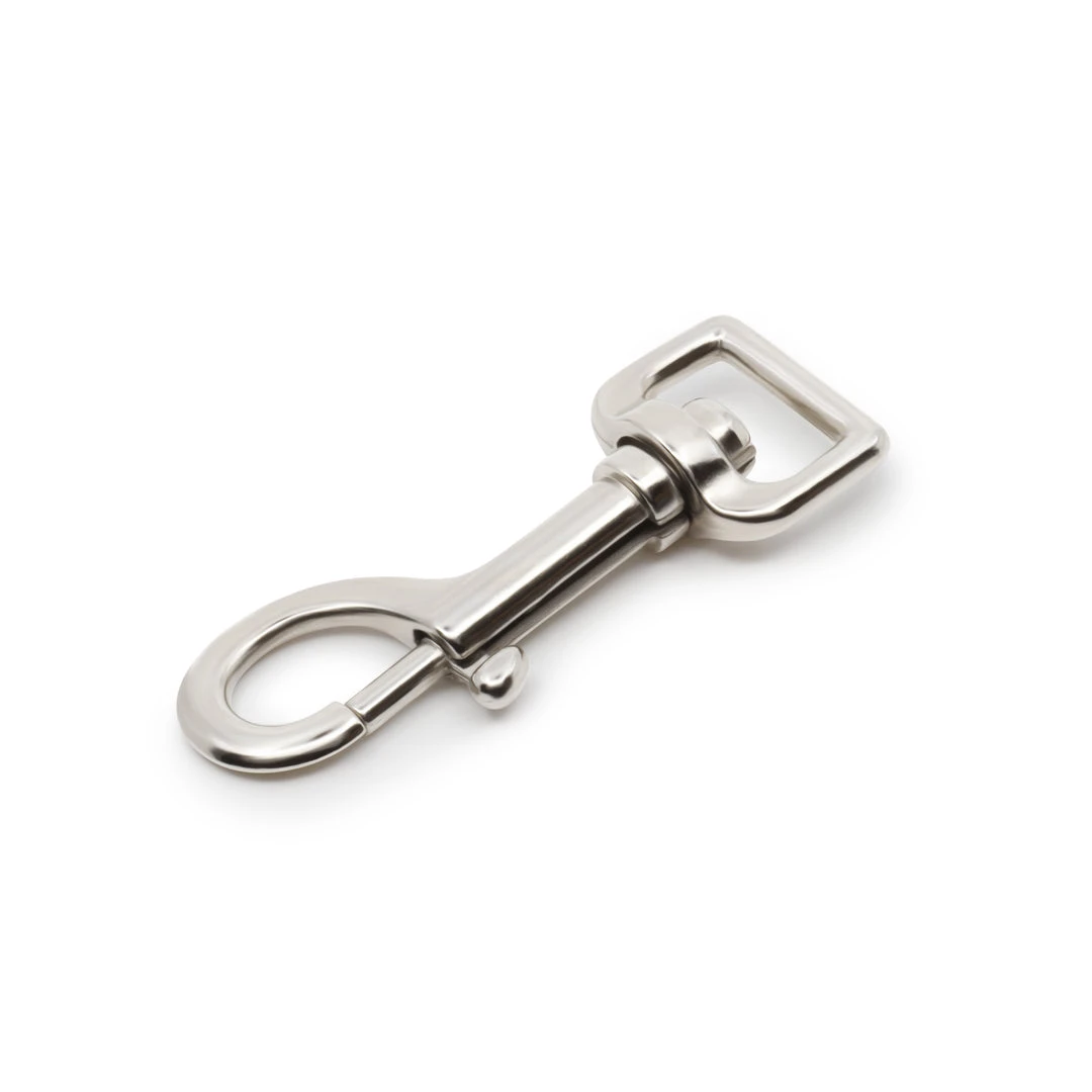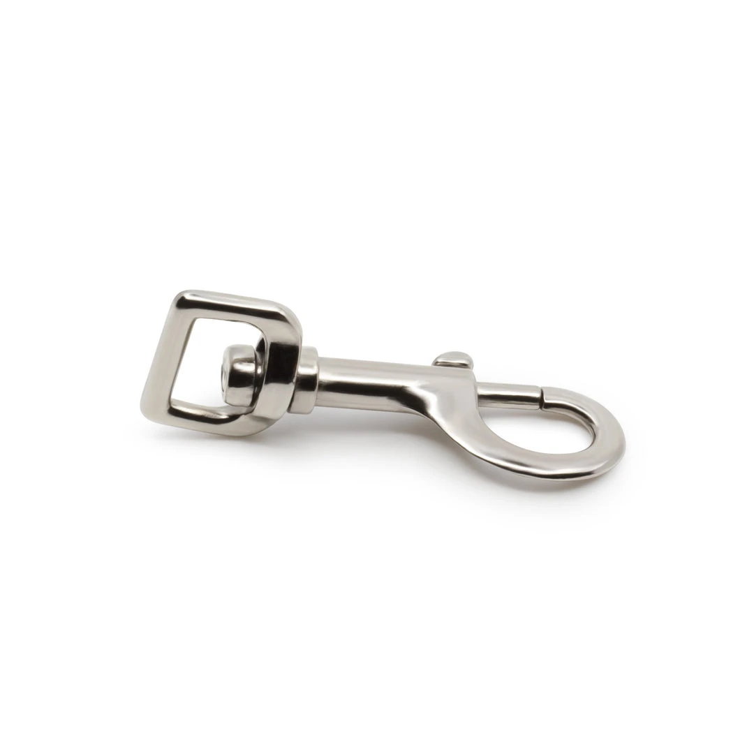 - The swivel hook has a loop end and a hook end; the hook end opens and closes allowing it to be attached to other pieces of hardware or fabric tabs
