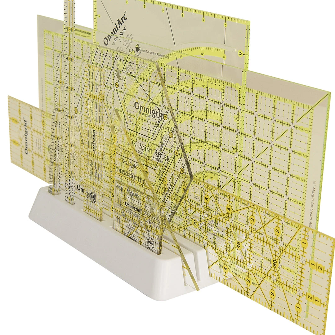 Dritz Quilting Ruler Stand is made of sturdy plastic and helps keep rulers & templates organized in easy reach. Slots are wide enough to accommodate 1/8 inch thick rulers and templates.