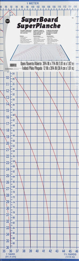 If you are looking for a spacious working surface for cutting fabrics and other craft and home decorating projects, the Open Folded Superboard is a smart choice. It has a sturdy Kraft board construction with a neat laminated finish. For added convenience, this superboard features markings in both directions and lines for cutting nine widths of bias strips and patterns for scallops and circles.
