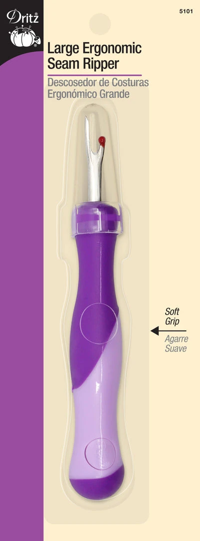 Change design patterns or alter outfits with the help of Dritz Ergonomic Seam Ripper. This efficient seam ripper has a rounded design that offers a good grip and fits snugly in your hand. It can easily be held by those with arthritis or carpal tunnel as well. The ergonomic seam ripper features a durable fine blade which is electronically ground for long-lasting sharpness and a protective ball for fabrics. You can use the seam ripper to safely remove stitches, rip seams and open buttonholes on fabrics.