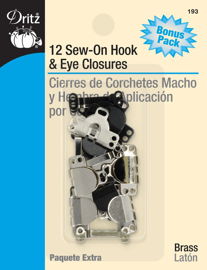 - Package contains (12) sets of Nickel-Plated Brass Sew-On Hook & Eye Closures