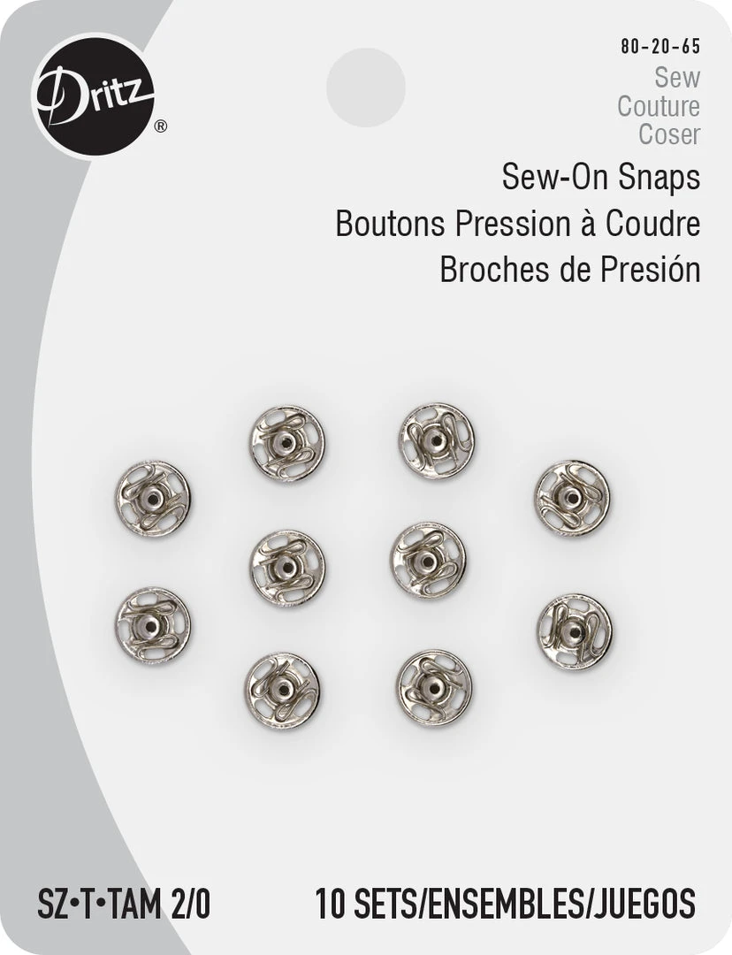 Use the Dritz Size 2/0 Sew-On Snaps Pack of 10 as garment closures for your coats, sweatshirts, cardigans and other apparel. Crafted for durability and toughness, these sew-on snaps are easy to use and a valuable addition to your sewing kit. Choose from a variety of sizes to suit your specific requirements.